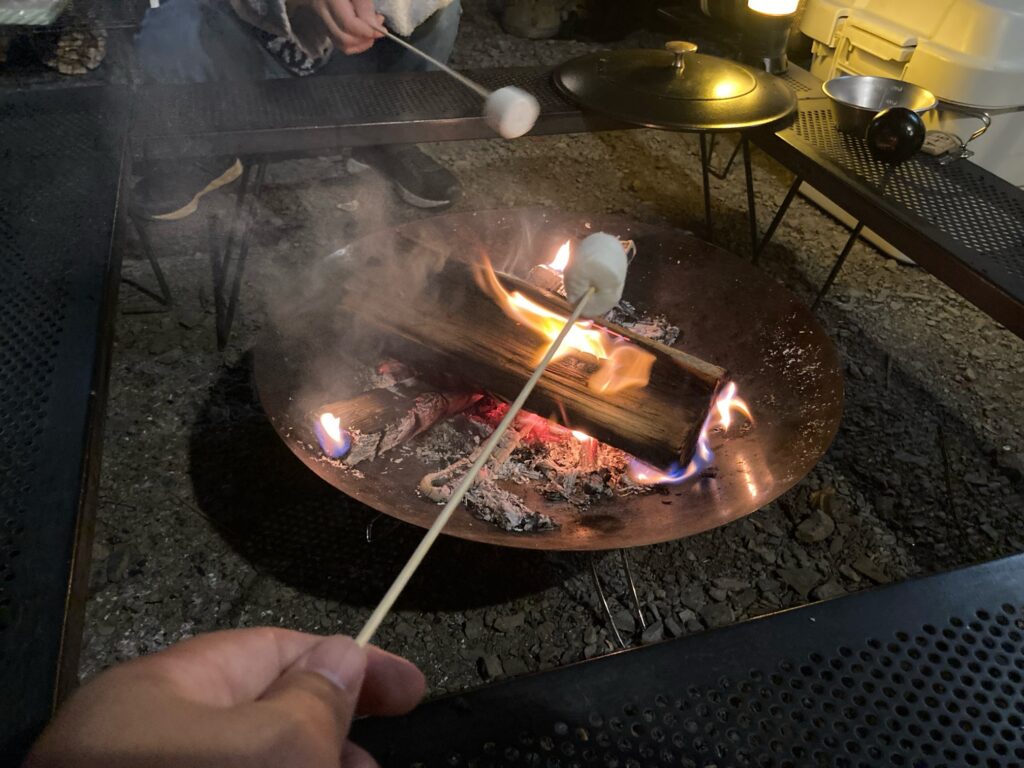 そして御飯のあとはみんなでマシュマロ焼いて食べました。我が家の定番。