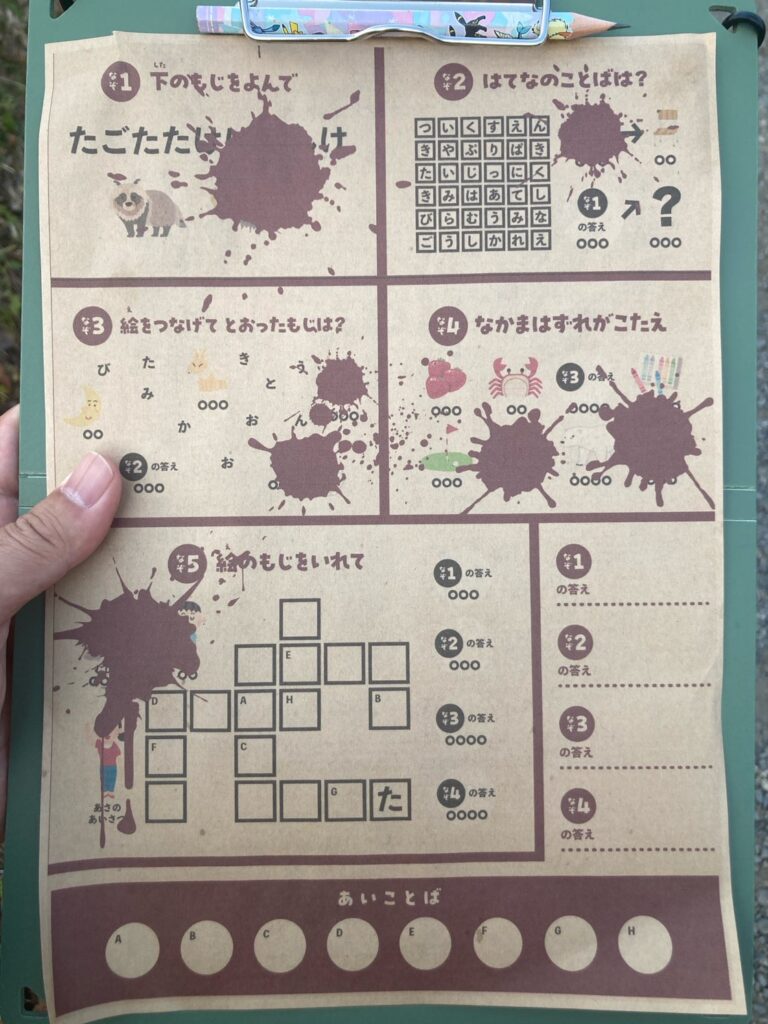 一つ注意しないといけないのが、「謎解き場所は基本的にテントサイト用の管理棟周辺」になりますので、受付して先にロッジに行ってしまうとかなり遠くなります。
