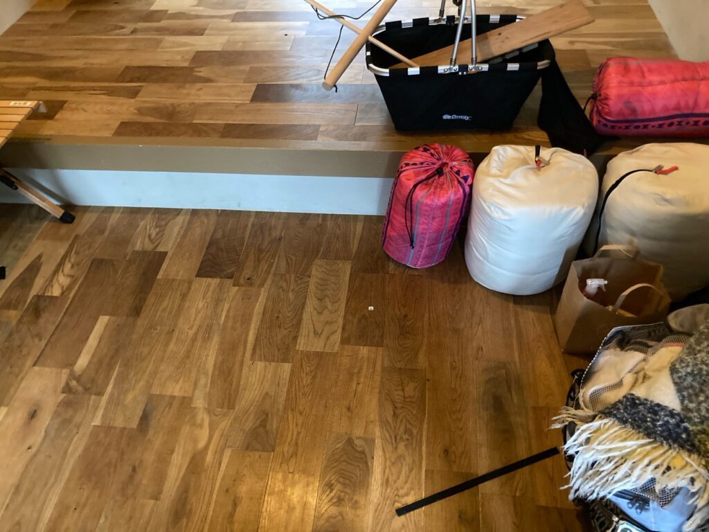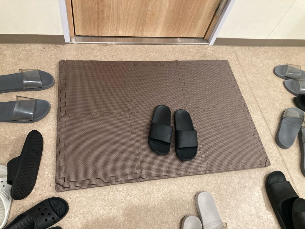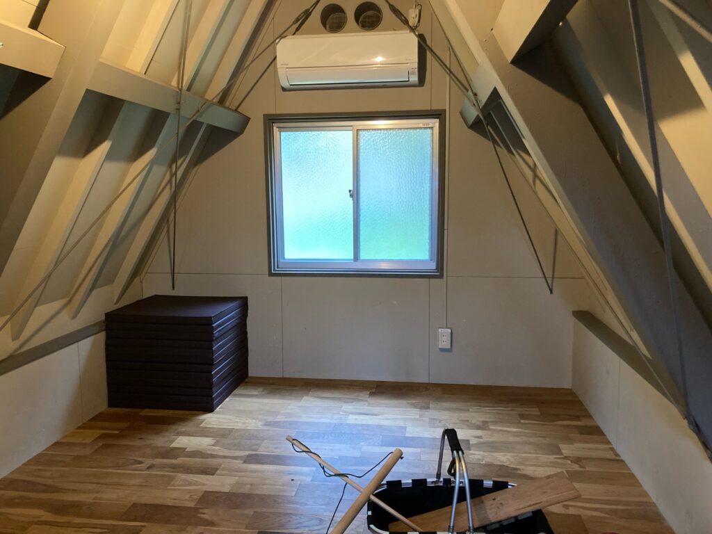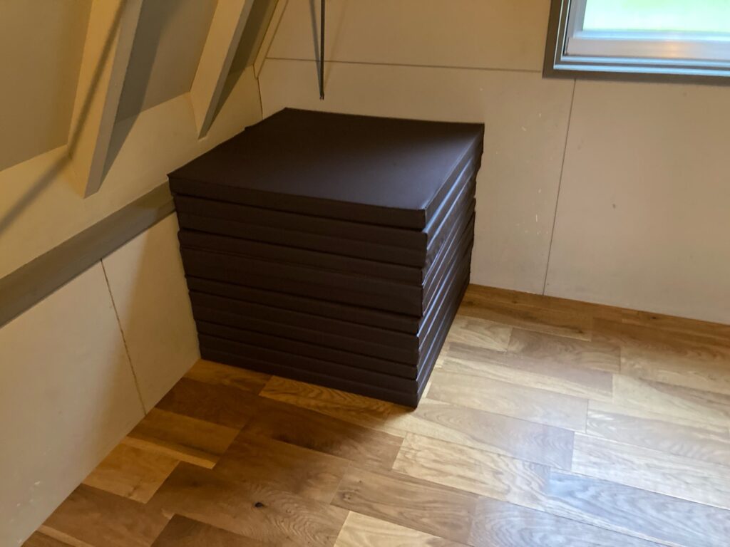 更に隅の方にはベッド用のマットがあり、これを敷き詰めてみんなで寝ます。