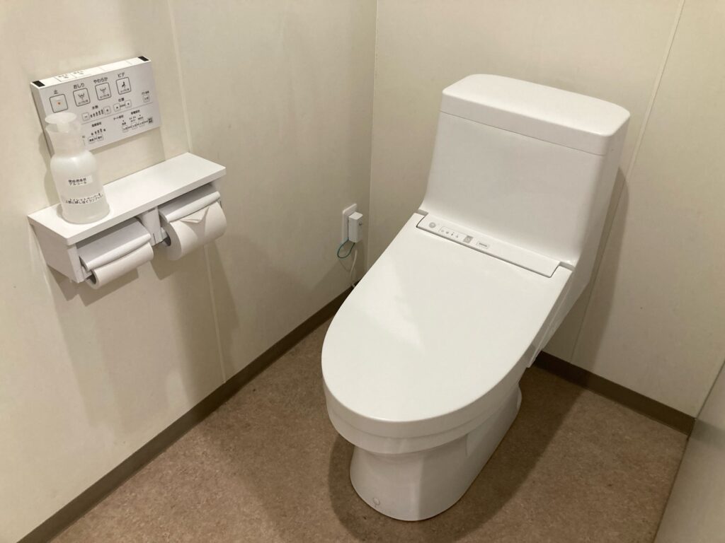 ロッジエリアのトイレとシャワー室は、ロッジエリア管理棟内にあります。