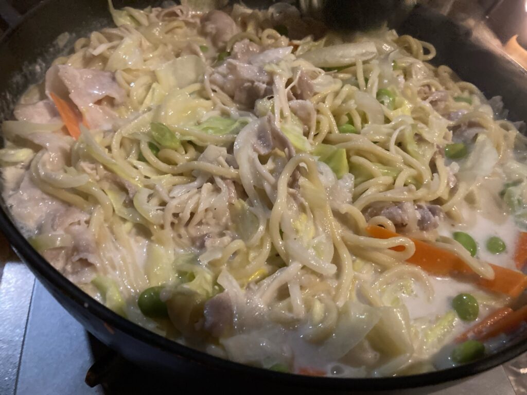 夜ごはんは「体が温まるちゃんぽん!」でした。ガスコンロを持って行ってぐつぐつ煮込んで、とっても美味しかったです。