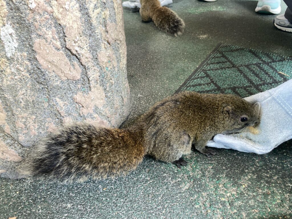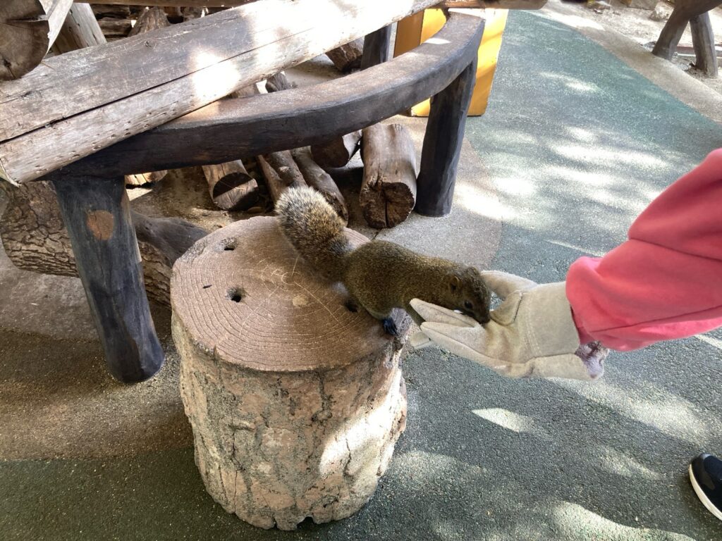 リスさんが手の平めがけて腕にのったりしてくれるので子供達も新しい体験です。