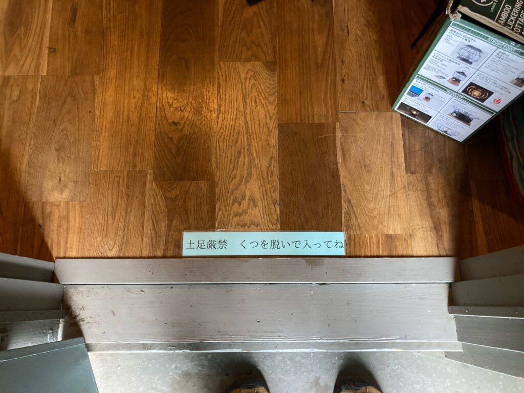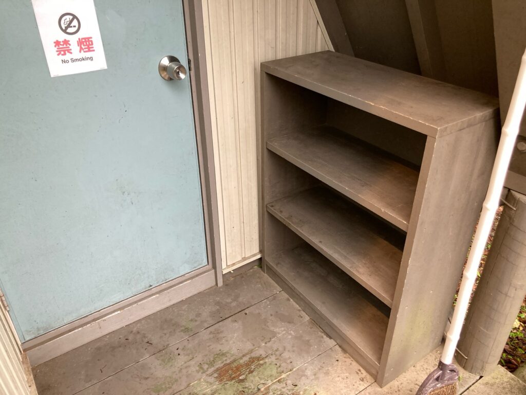 ロッジの入り口には靴箱があって、ここで靴を脱ぎます。大き目の靴箱なので傘などを立てかけておくのも便利です。