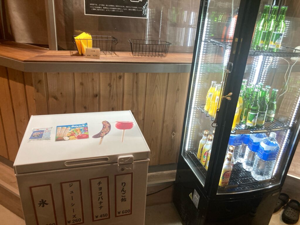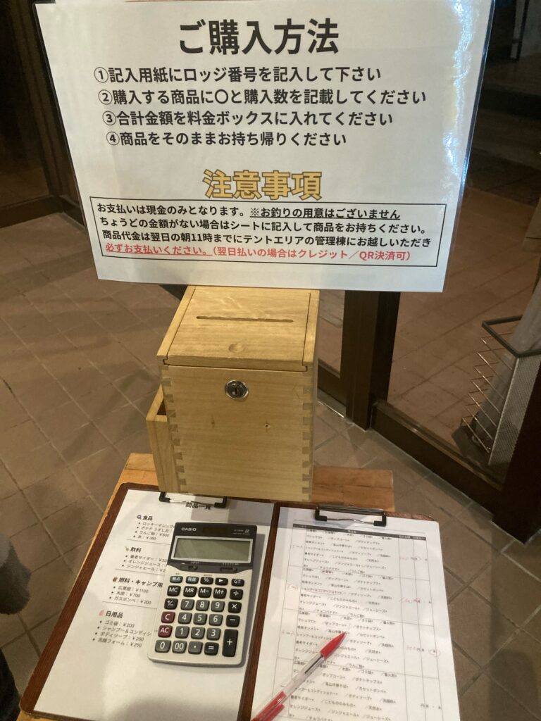 ロッジ用管理棟では売店もあり、無人なので購入方法は少し変わっています。