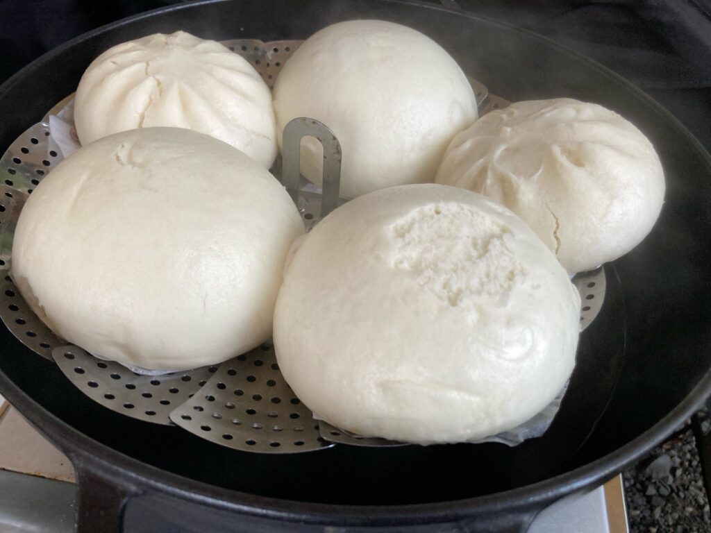 翌朝のごはんは「ほかほか中華まん!!」で温まる。