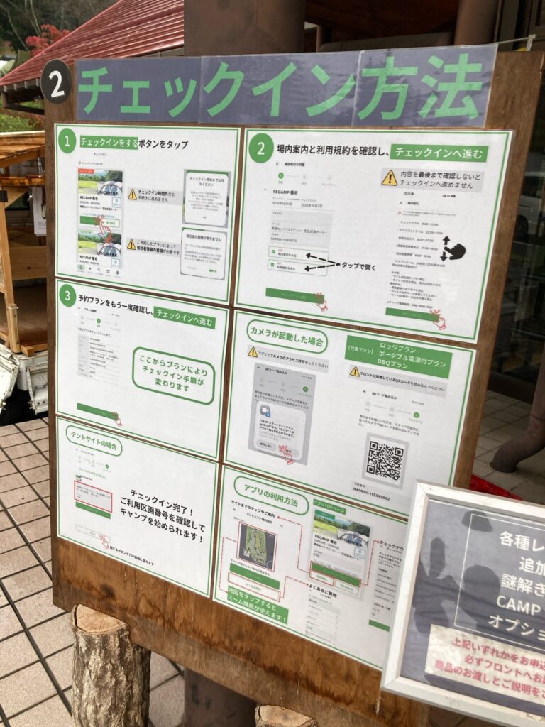 今回のキャンプで少し他のキャンプ場と違っていたのは、チェックインとアウトの方法です。