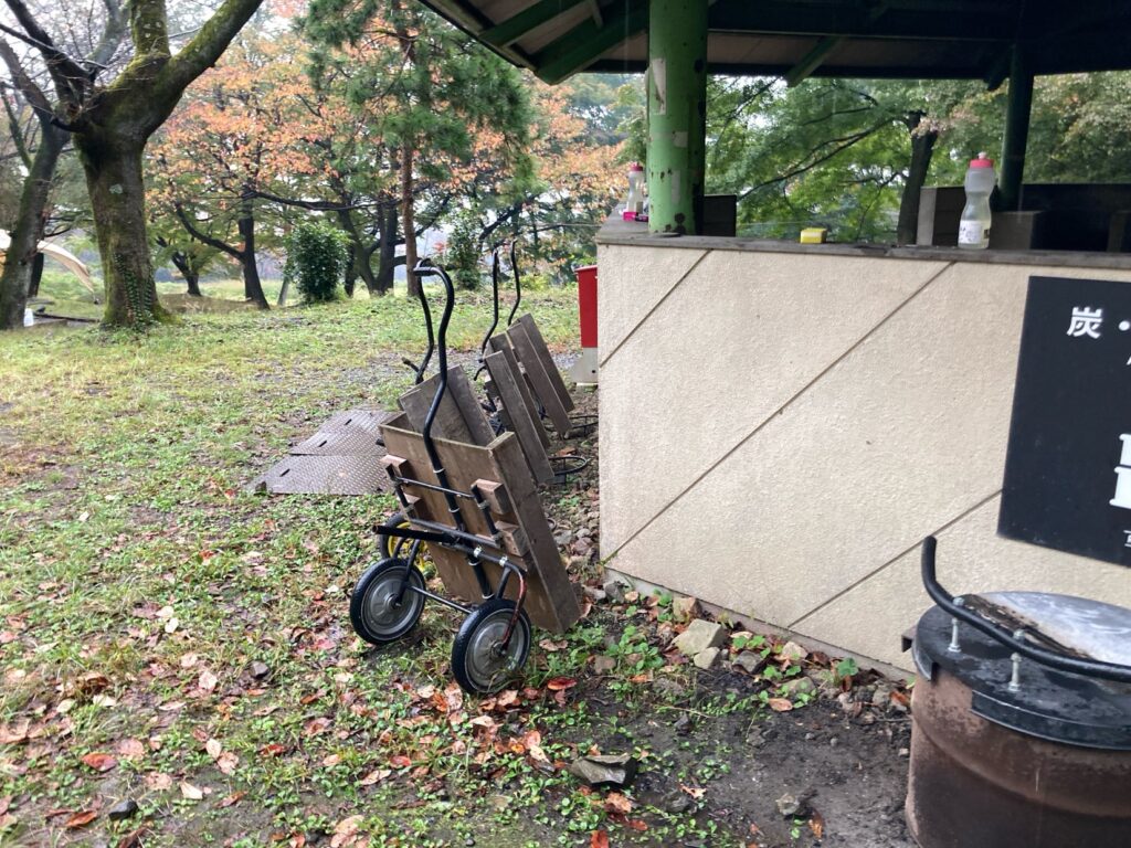また炊事場横には「荷運び用リアカー」が置かれており、荷物をロッジに運び入れる際は便利です。
