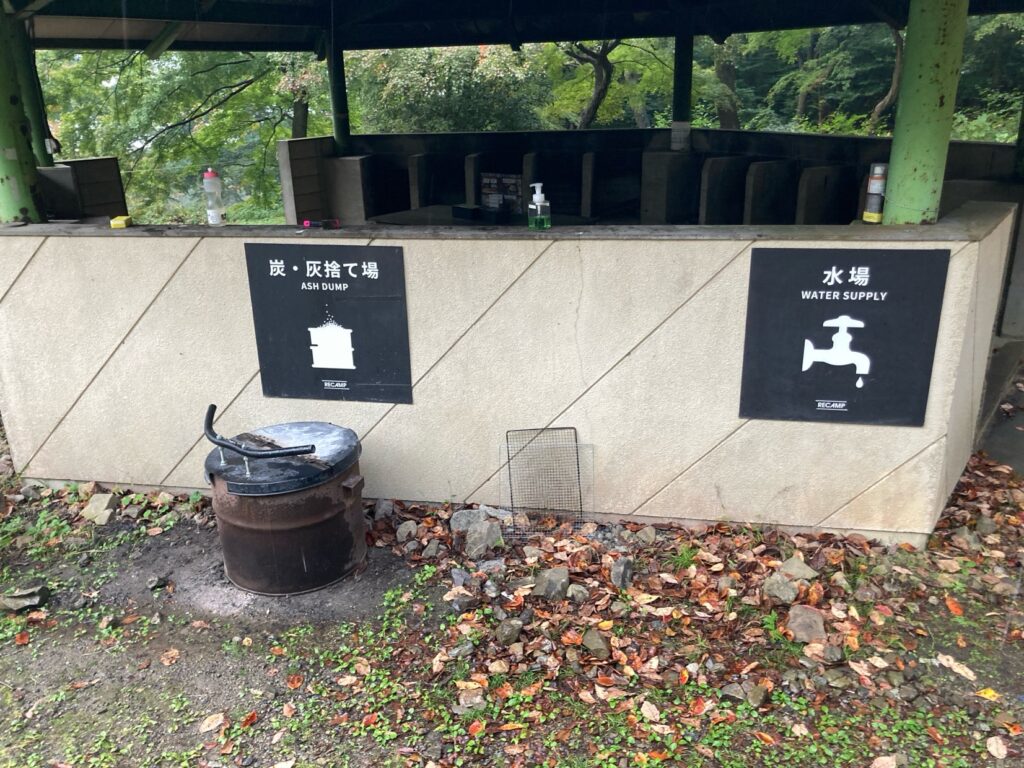 ②特に、ロッジ横にあったBBQエリアは屋根付きでテーブル、椅子、焚き火台が準備されておりファミリーキャンプにはかなり助かる設備。