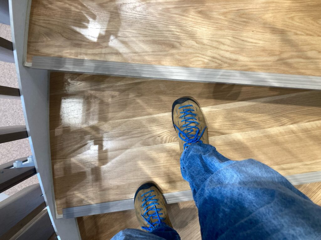 そんなアップダウン激しい歩行があったにも関わらず、腰や膝にきていないのはだいぶ靴に助けられている証拠。また、休憩場所である床も木製でありコンクリートよりはましではあるが、反発は強い床。基本的には子連れで行くところ全てこんなものです。それ故、靴選びは歳とってくると大事だなと実感している次第です。