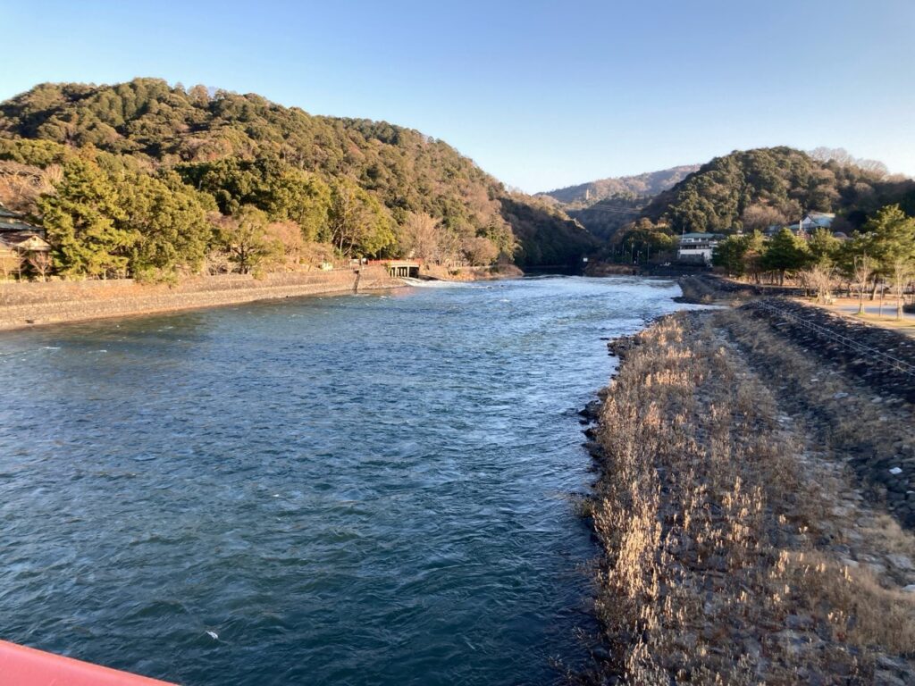 有料パーキングを出てからは徒歩で、次は宇治橋を渡り始めます。橋の上は同じく石畳のようなコンクリートでKEENの靴にとっては安定の地面です。しっかりと地面を掴み、滑り辛いのは確かです。
