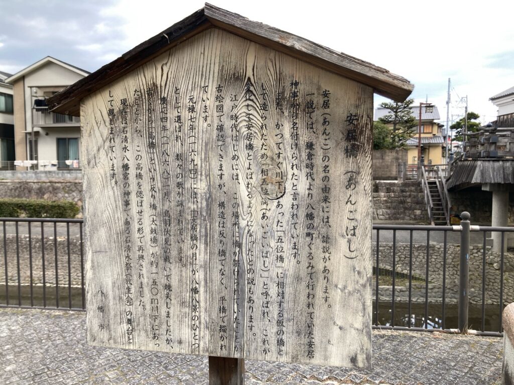 安居橋(あんごばし)は鎌倉時代からある橋で石清水八幡宮の神事である石清水祭でも使われる橋です。
