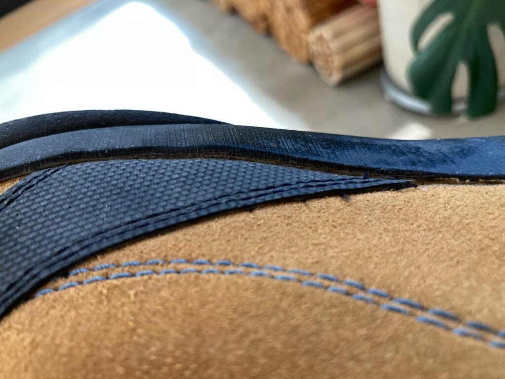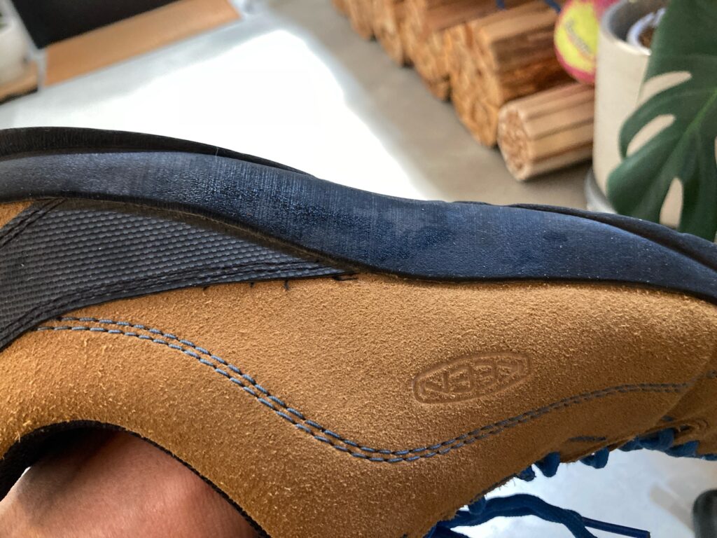 よく固い靴だと足の小指付け根部分のラバー部分がはがれてきてダメになりますが、KEENの靴に関してはそれが感じられないほど、しっかりとレザーとラバー部分がくっついているので問題なさそうです。
