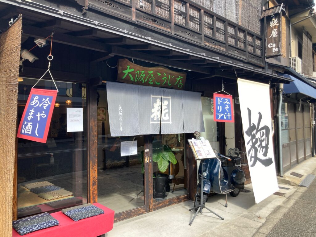 帰りは「大阪屋こうじ店」という麹のお店でみんなでランチ。老舗のお店であり人気店です。お昼に行くと予約待ちで少し並びました。