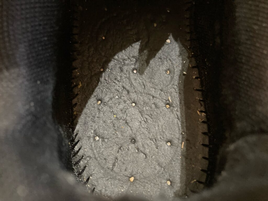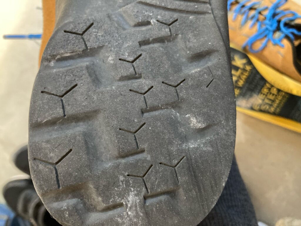靴裏の溝部分とつながっているのだと思いますが、もちろん雨の日に水が浸透してくることはありませんでした。よく見ると車のタイヤみたいですね。これが地面をしっかりとつかんでくれる役割なのだと思いました。