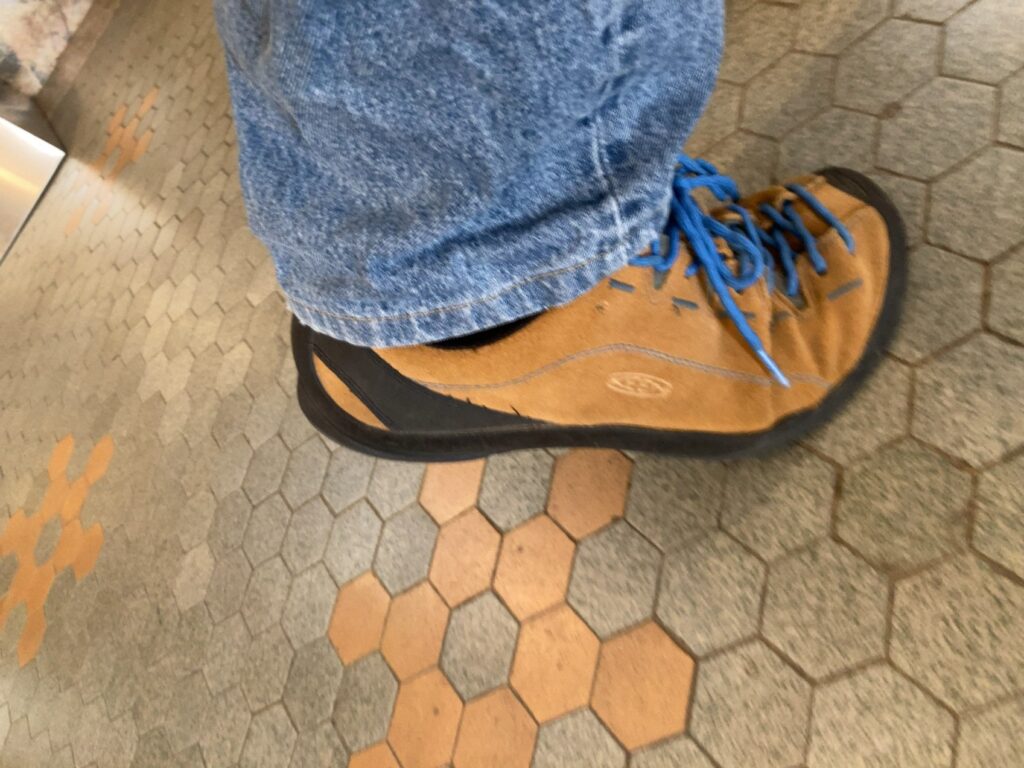 美術館内の床も基本的には滑りやすいとは思います。そしてコンクリート同様に固めの床である事は間違いありませんが、KEENの靴だと床からの反発が少なく、足に負担がかかりにくいと思いました。
