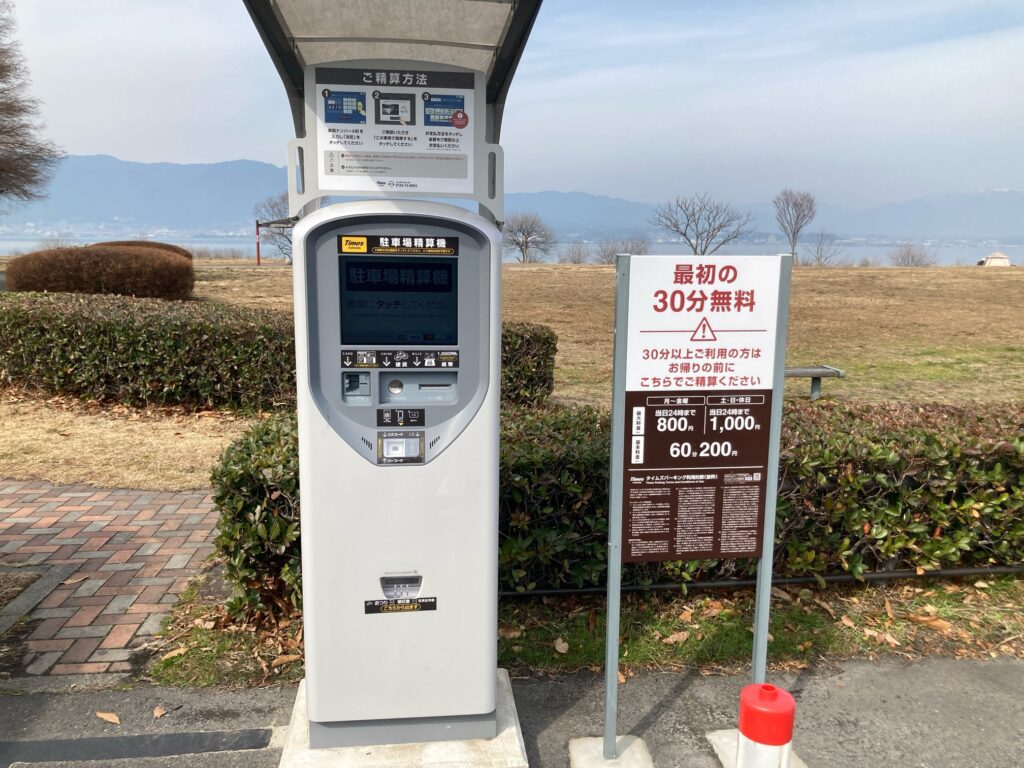駐車料金は平日は当日24時まで800円、土日祝は当日24時まで1000円と比較的安い設定となっており一日ゆったりするにはかなりコスパの良い値段です。精算機自体は駐車場内にあり、帰りに自分の車のナンバーを入れて清算するタイプです。