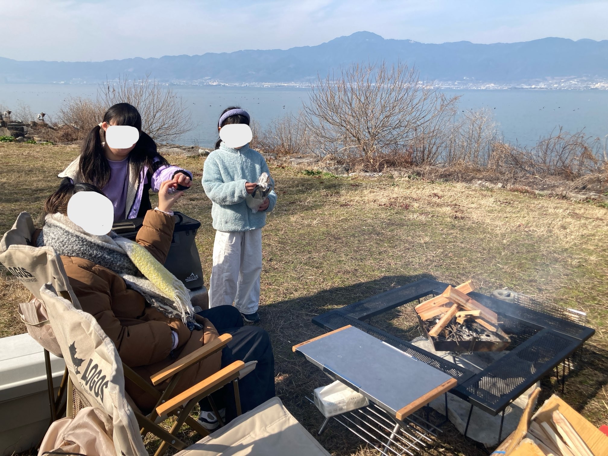 どんな場所かと言うと、すぐ目の前が琵琶湖でこんな景色が見えます。今回は少し山の方が白くなって見えづらかったですが、もっとクリアになると景色は最高です!