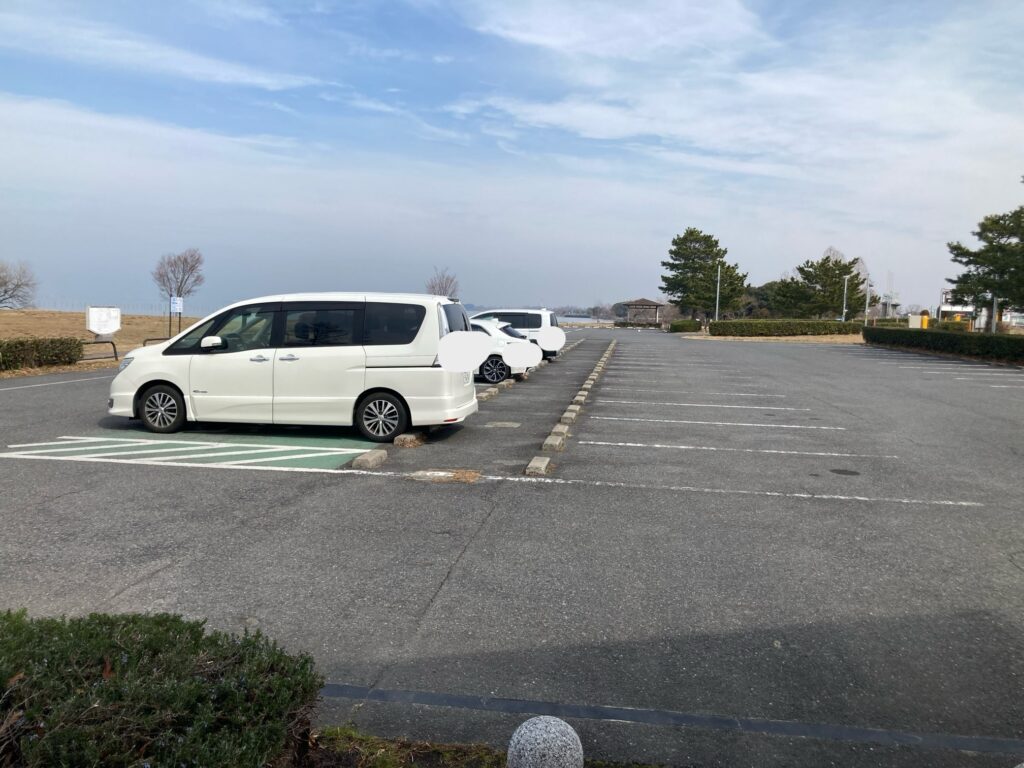 駐車場の台数はGoogleで検索すると54台停められることになっています。広めの駐車場なのでシーズンオフだと全然お昼に来ても停められます。我が家は朝に家を出て、到着は10時半ごろでしたが、1番のりでした!